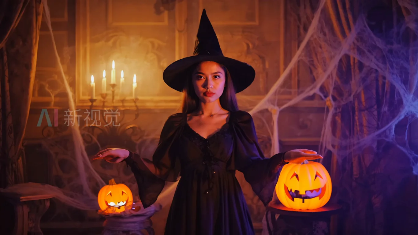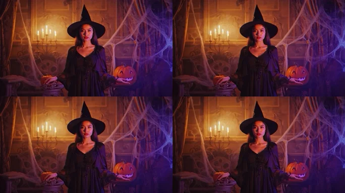 首页 / 视频素材 / AI视频素材(横屏) / 万圣节装扮女巫特写