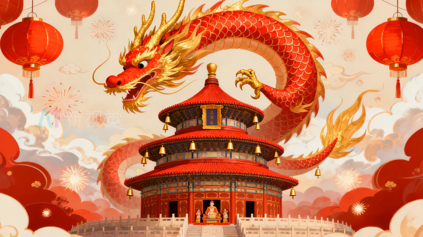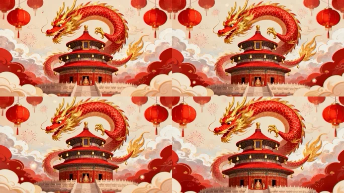 首页 / 视频素材 / AI视频素材(横屏) / 中国风龙与古建筑节日素材