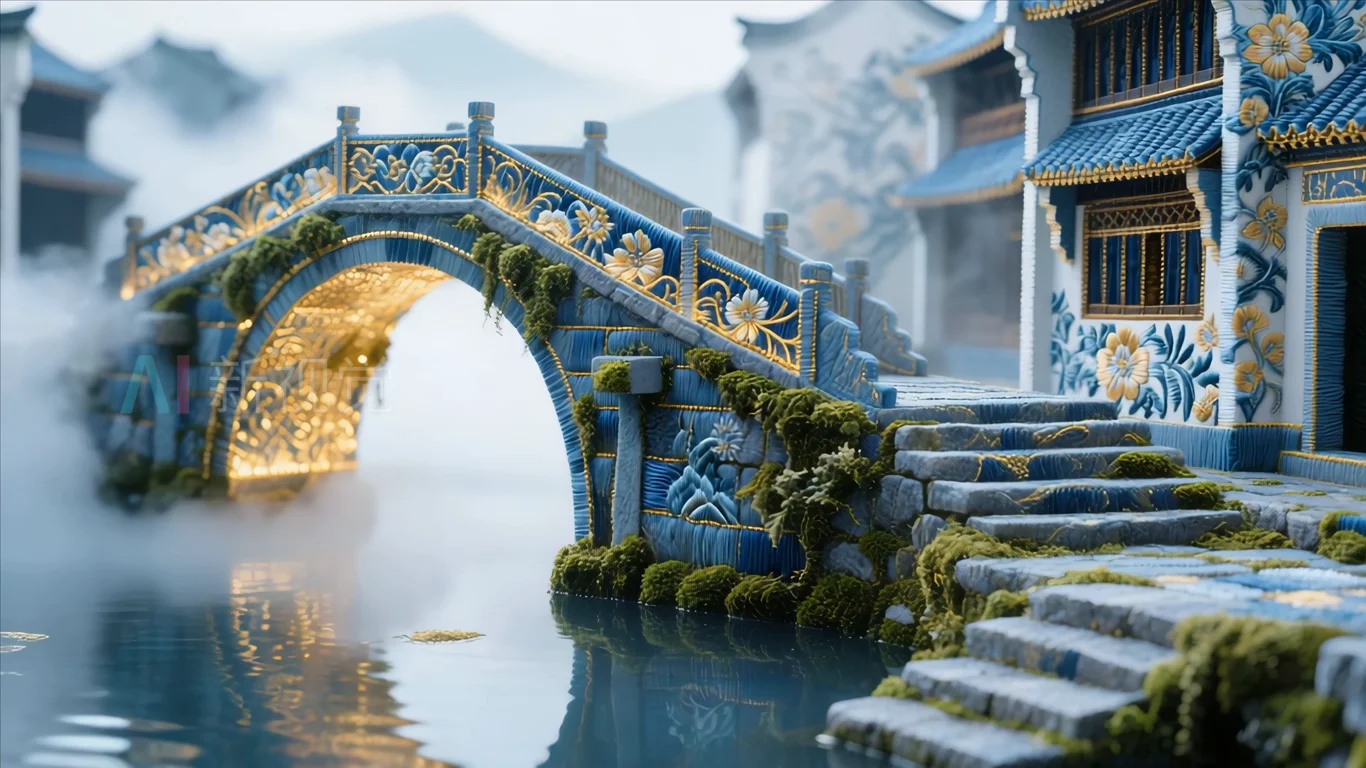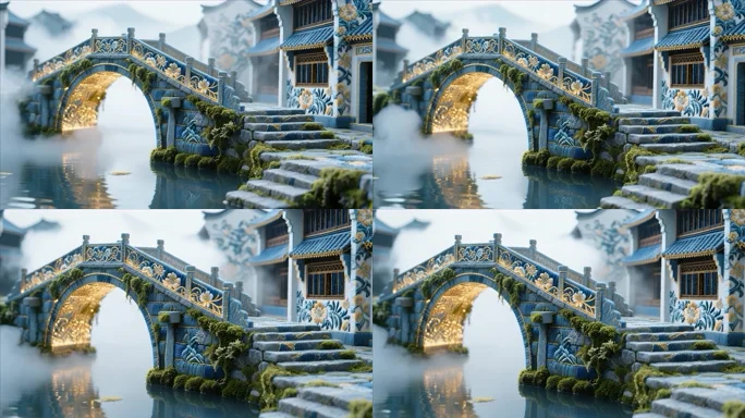 首页 / 视频素材 / AI视频素材(横屏) / 中式古风桥与建筑景观