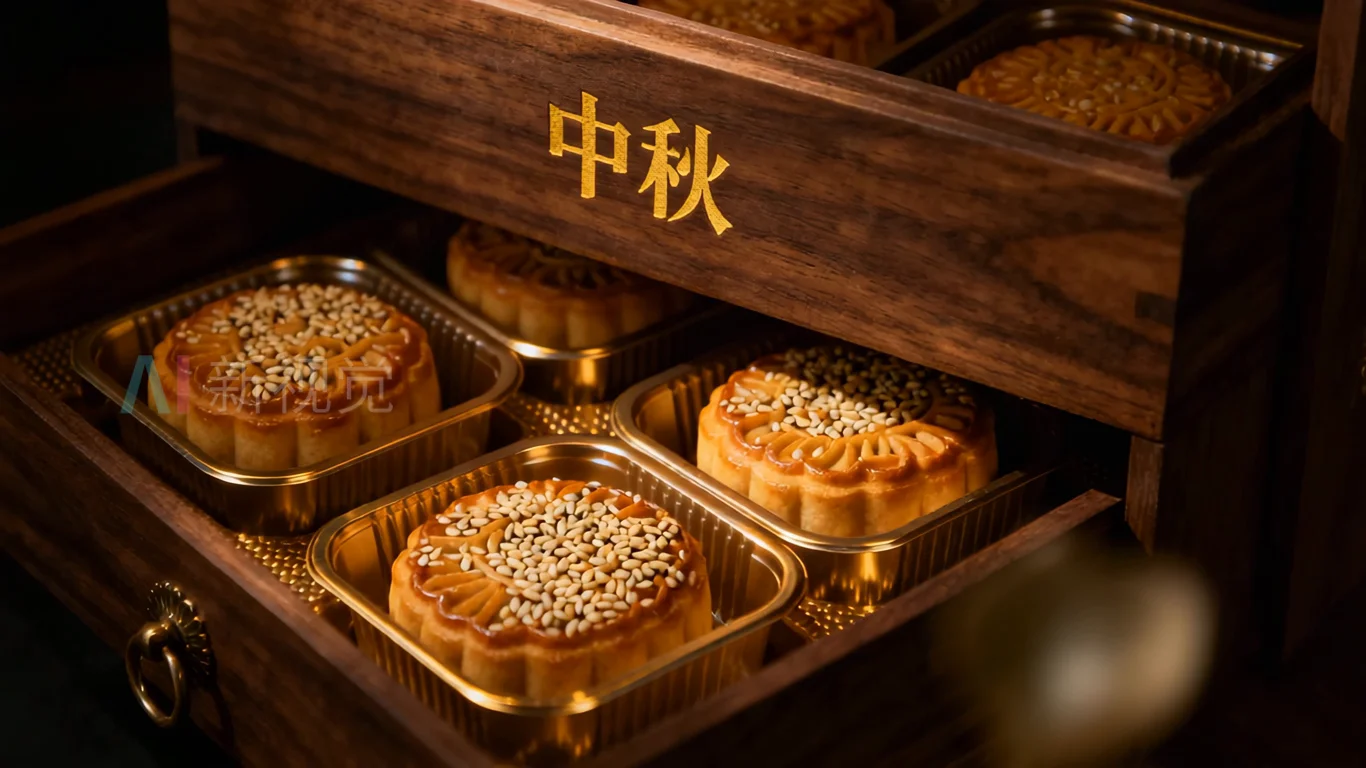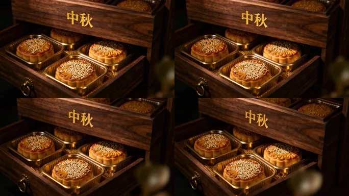 中秋木质盒内广式月饼素材