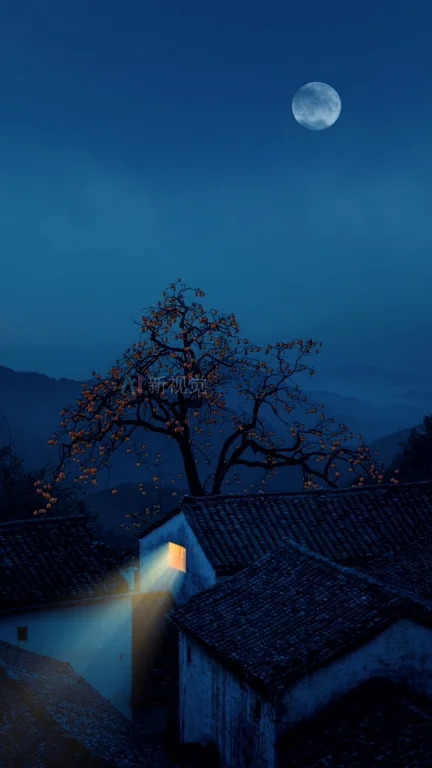 乡村治愈炊烟乡愁柿子树鸟叫农村家乡夜景秋天收获3