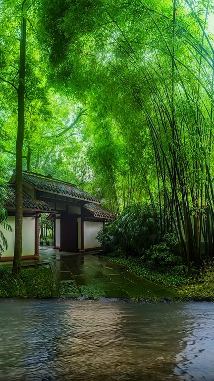 乡村治愈炊烟乡愁鸟叫农村家乡石桥竹林山水唯美美景草屋