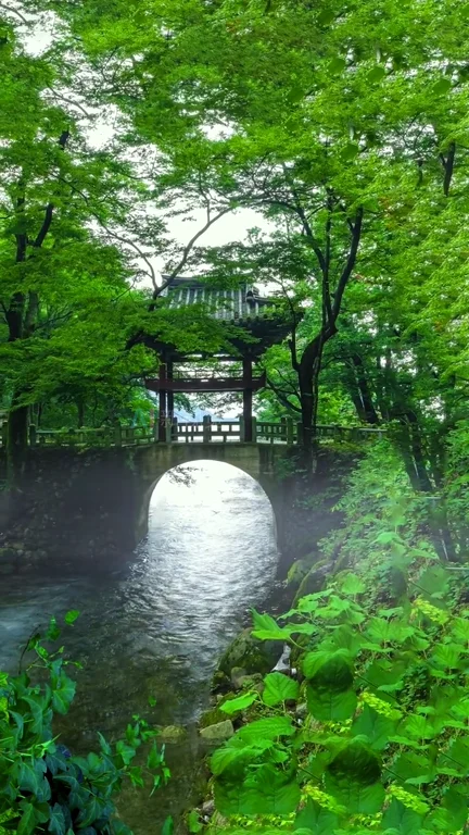 乡村治愈炊烟乡愁鸟叫水田禾苗农村家乡石桥石山山水唯美美景凉亭八角亭