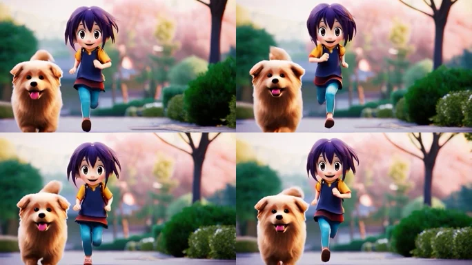 首页 / 视频素材 / AI视频素材(横屏) / 二次元奔跑的小狗和人