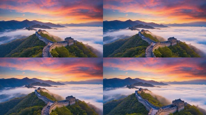 首页 / 视频素材 / AI视频素材(横屏) / 云海中的壮丽长城景观