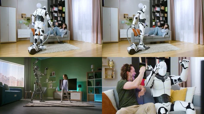 人与机器人居家机器人跳舞机器人与人类看足球赛,AIGC视频,未来机器人,AI生成视频素材,1920*1080,MP4视频格式,高清AI视频素材!