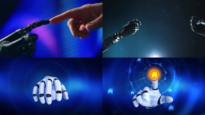 人与机器人手指接触碰撞AI人工智能电路板高科技素材DNA虚拟屏幕,MP4格式,1920*1080,30P,AI视频素材下砸,AIGC视频素材库,高清视频素材。