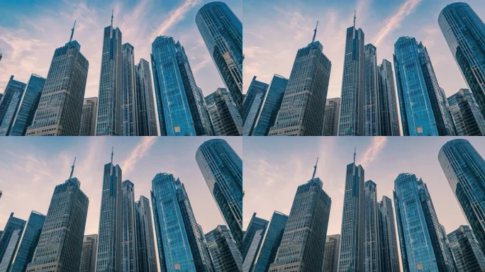 首页 / 视频素材 / AI视频素材(横屏) / 仰视拍摄城市高楼建筑蓝天白云延时