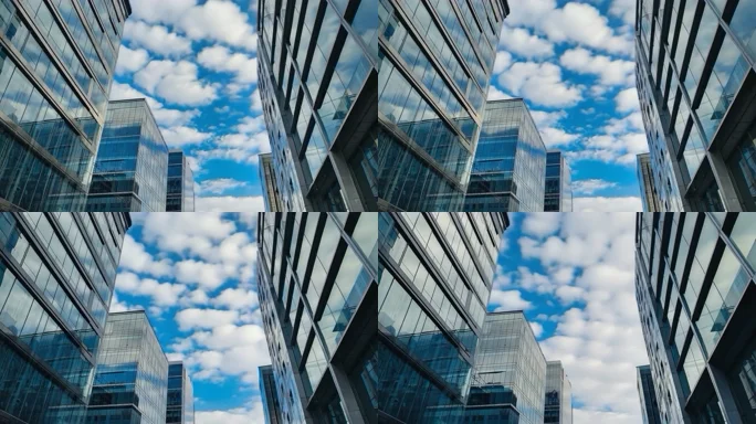 首页 / 视频素材 / AI视频素材(横屏) / 仰视拍摄城市高楼建筑蓝天白云延时