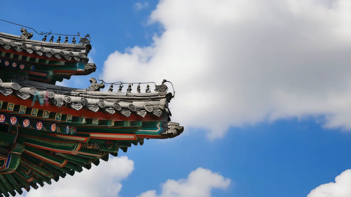 首页 / 视频素材 / AI视频素材(横屏) / 传统古建筑屋檐蓝天白云延时