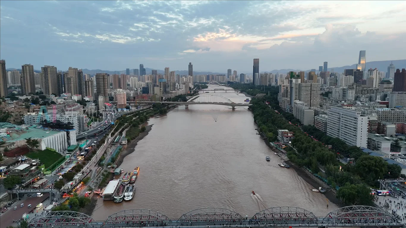 兰州黄河城市风光航拍