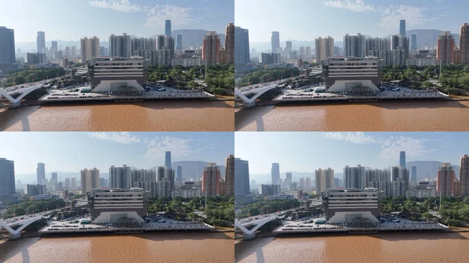 兰州黄河畔城市风光航拍