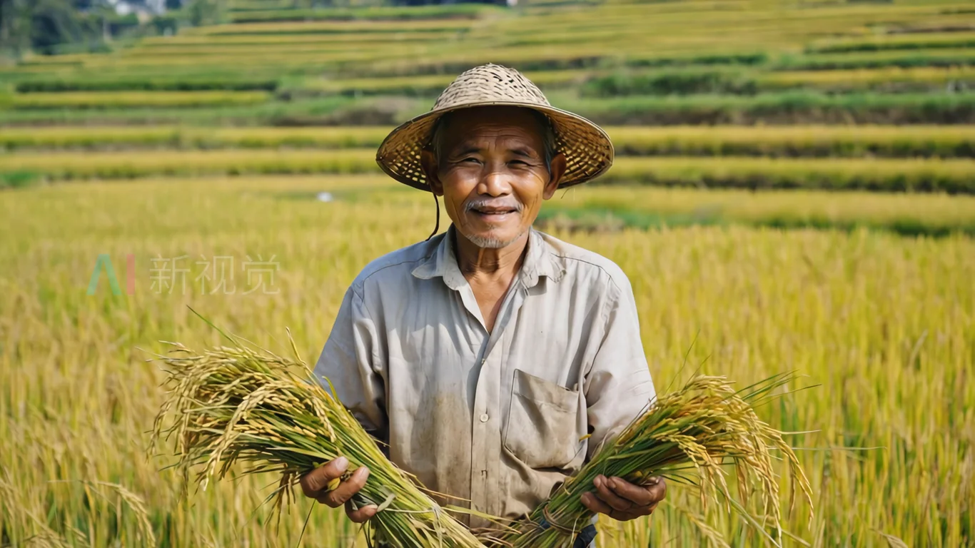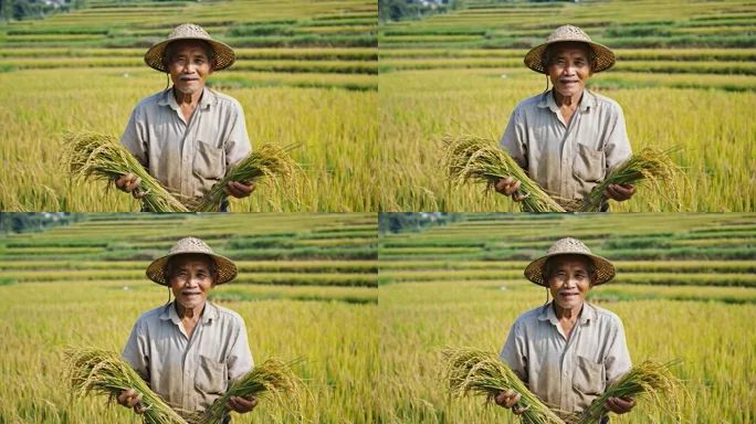 首页 / 视频素材 / AI视频素材(横屏) / 农民稻田手持稻穗微笑画面