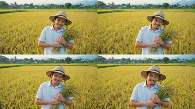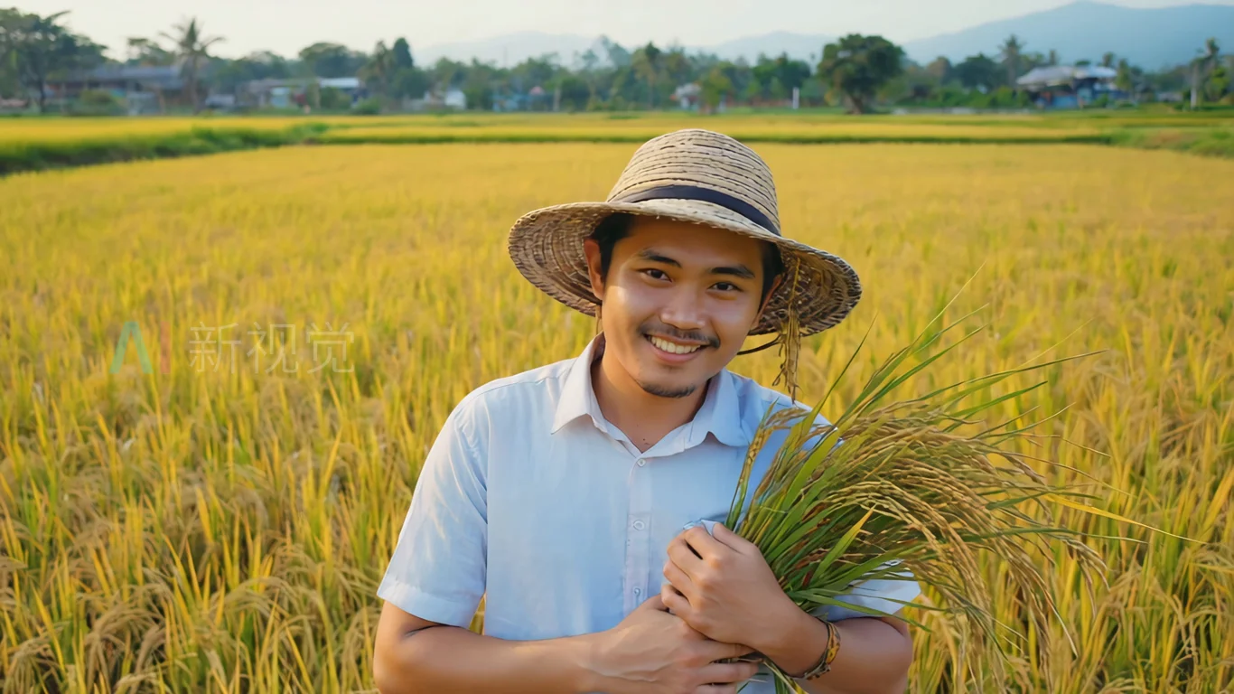 首页 / 视频素材 / AI视频素材(横屏) / 农民稻田手持稻穗微笑画面