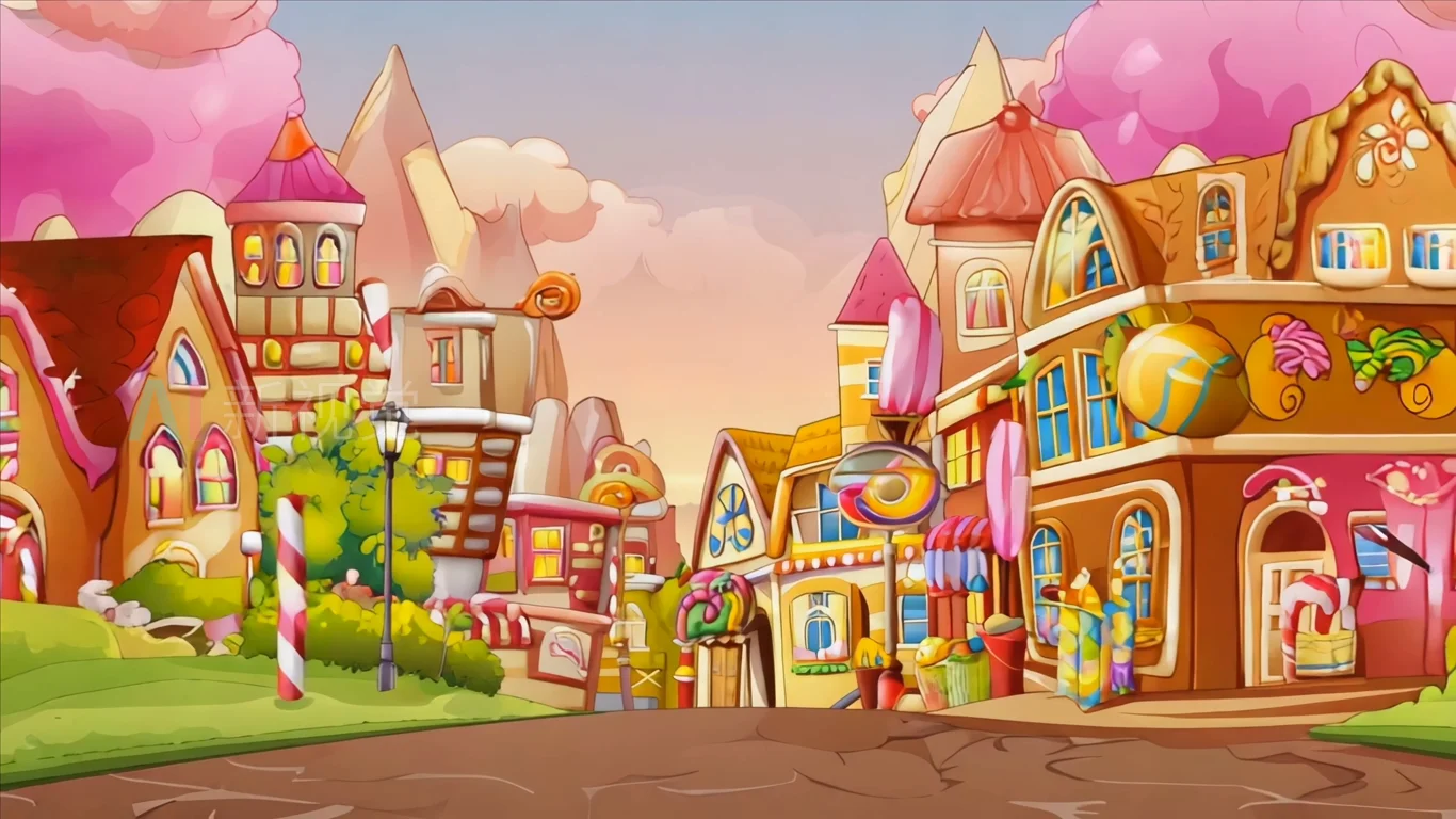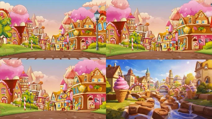 卡通风格糖果小镇场景
