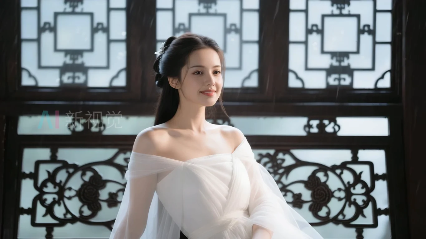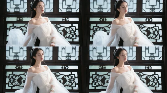 首页 / 视频素材 / AI视频素材(横屏) / 古装女子倚坐雕花门窗旁
