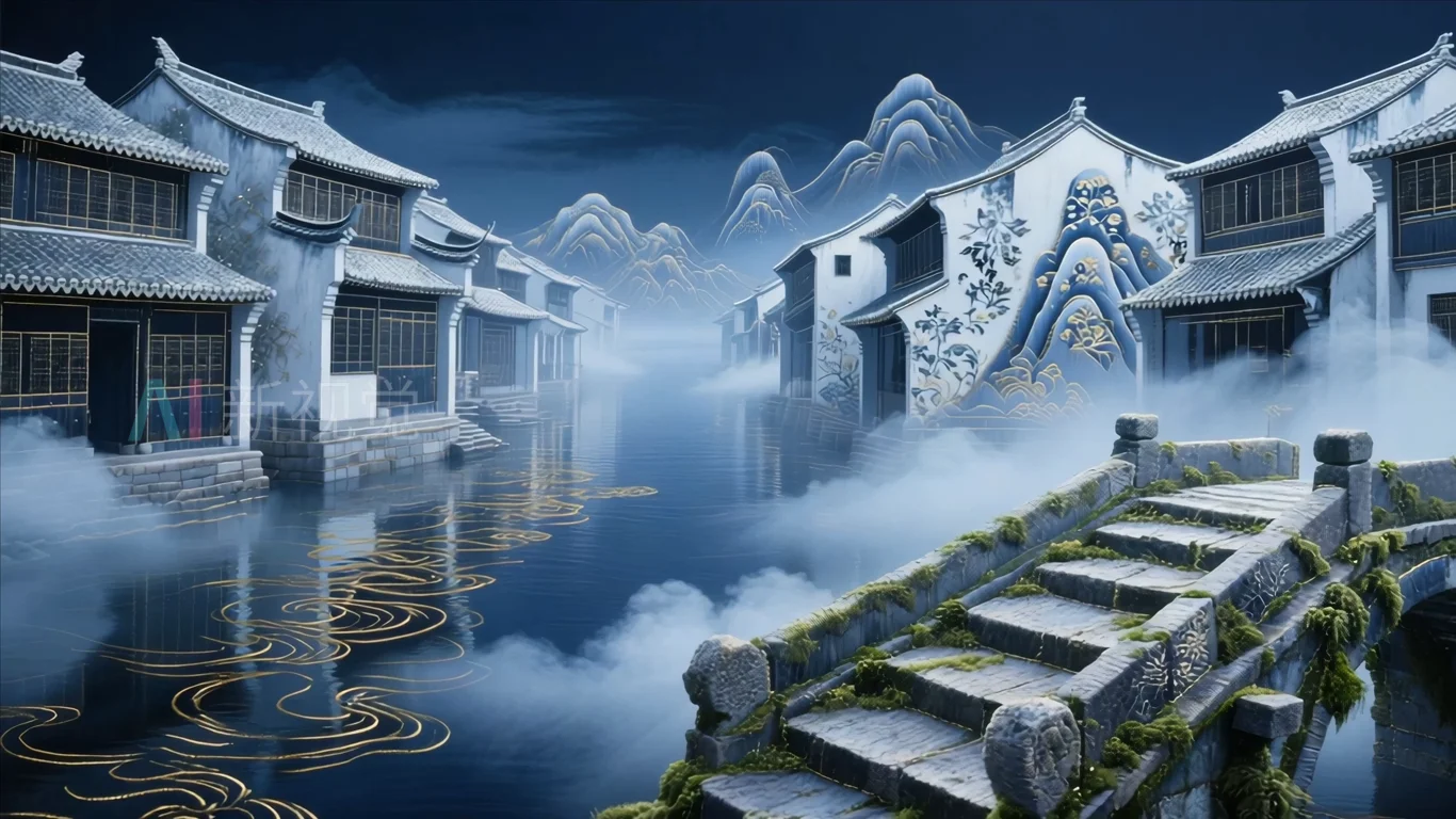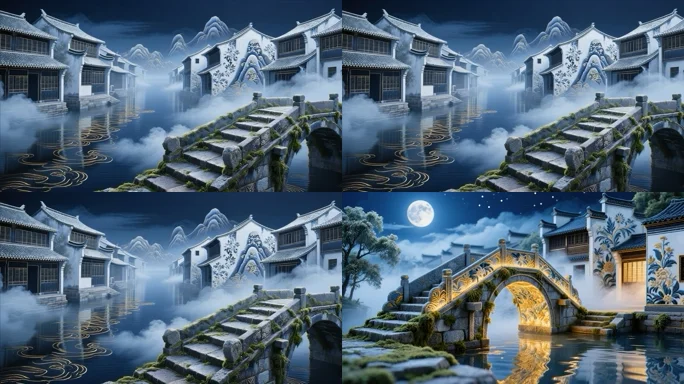 古风江南水乡水墨场景