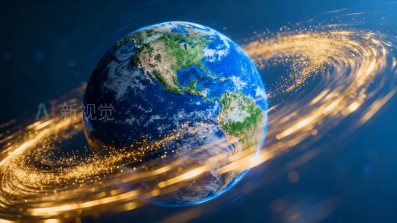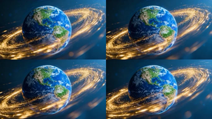 首页 / 视频素材 / AI视频素材(横屏) / 地球环绕金色粒子特效素材