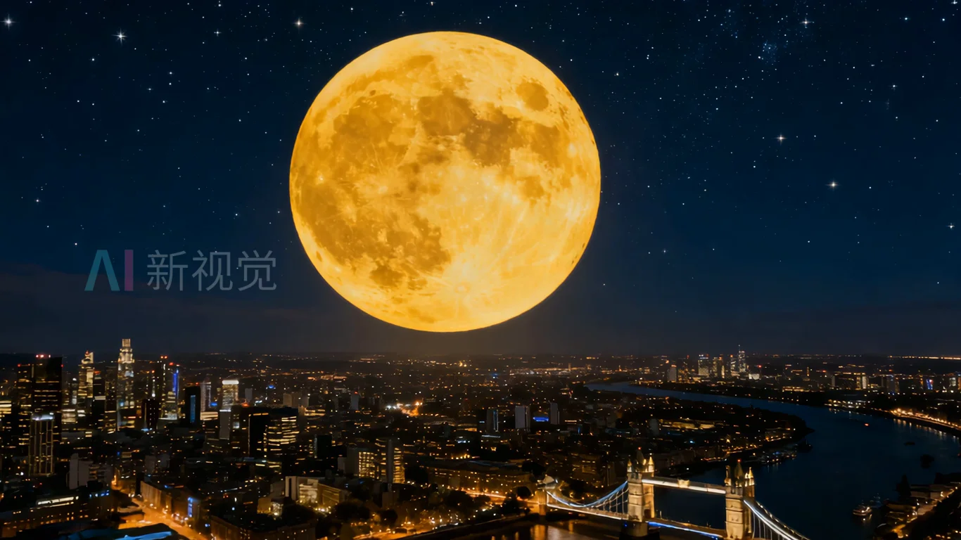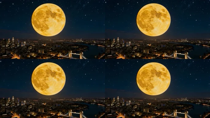 首页 / 视频素材 / AI视频素材(横屏) / 城市上空的满月夜景