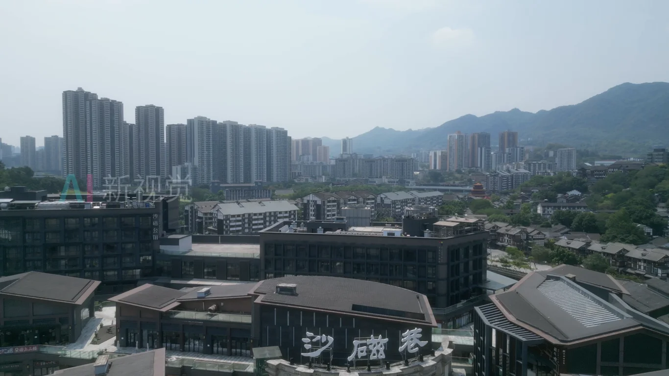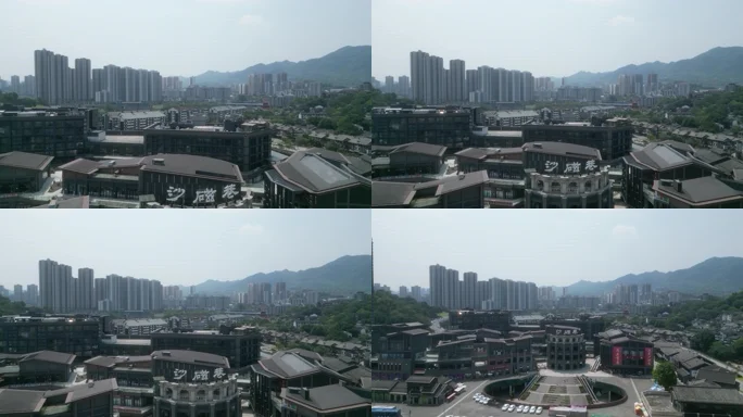 中式建筑 建筑群 城市 停车场 远山 高楼 园区 绿化