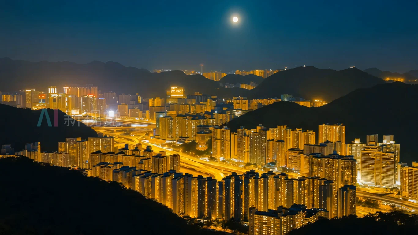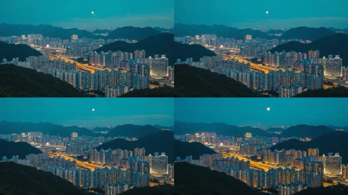 城市夜景高楼与月色全景