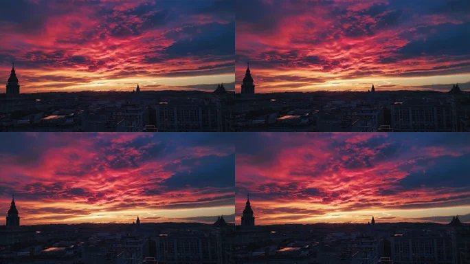 城市建筑间的晚霞景色