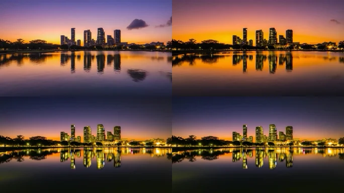 首页 / 视频素材 / AI视频素材(横屏) / 城市建筑黄昏湖面倒影景观
