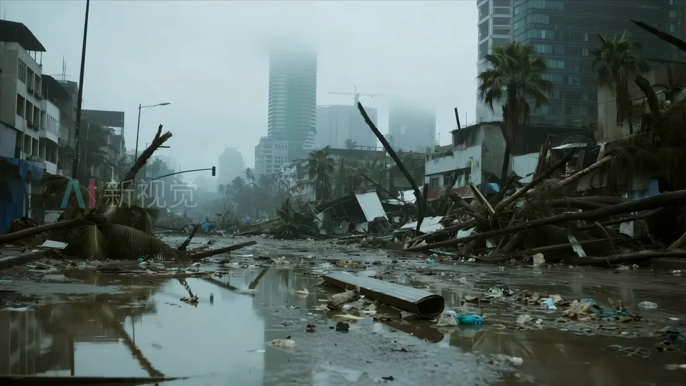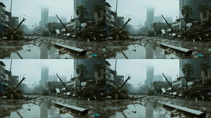 城市街道台风过后景象