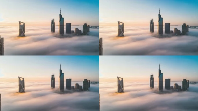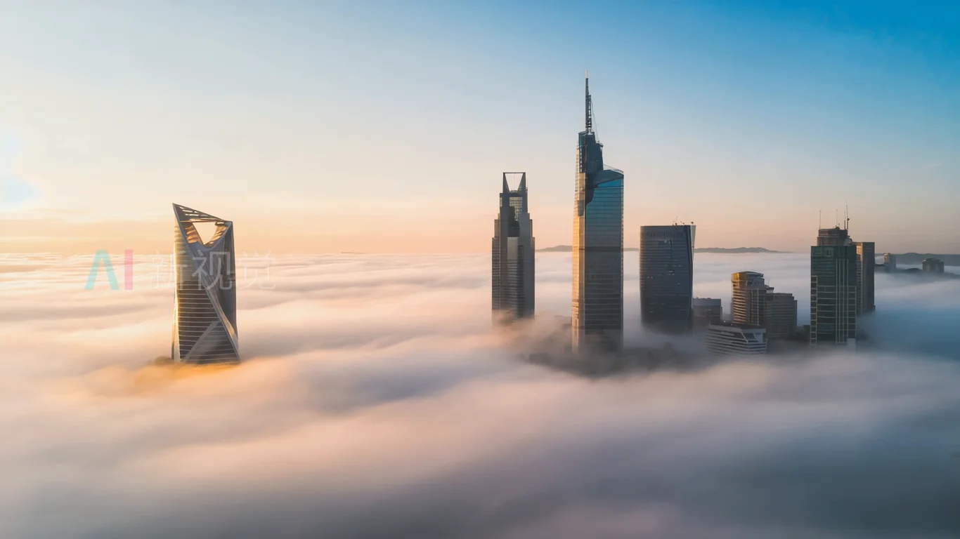 首页 / 视频素材 / AI视频素材(横屏) / 城市高楼云海之上航拍景象