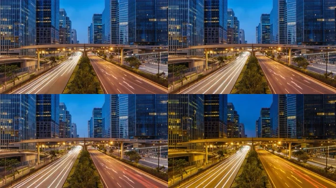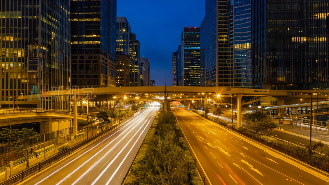 首页 / 视频素材 / AI视频素材(横屏) / 城市高楼间的道路夜景交通延时
