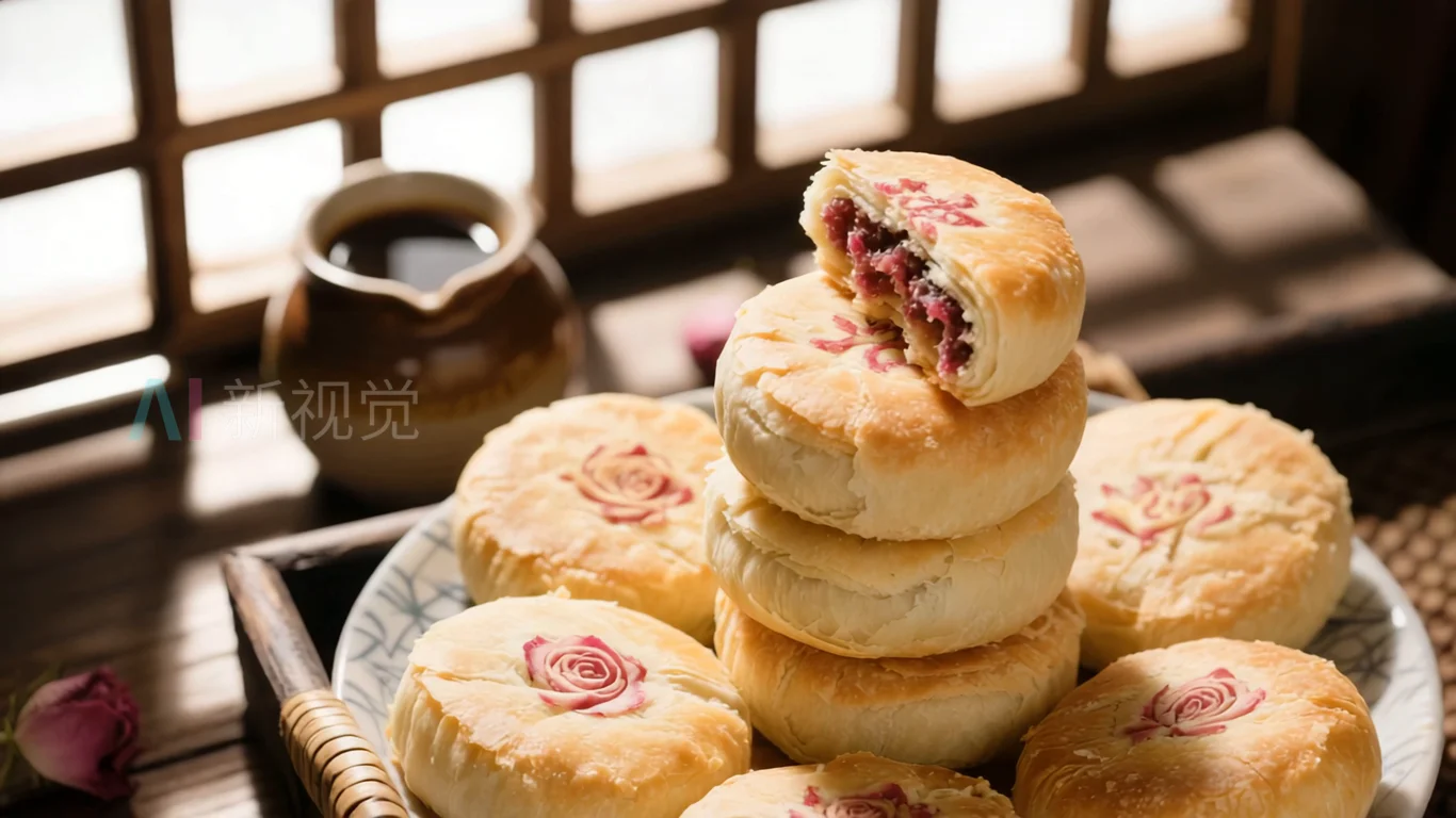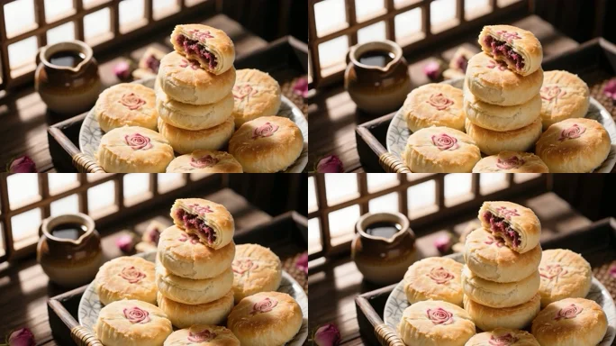 堆叠的玫瑰馅老式月饼