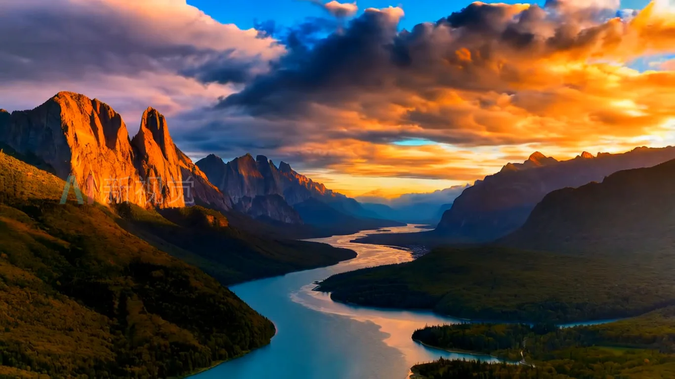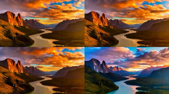 首页 / 视频素材 / AI视频素材(横屏) / 壮丽山河日落时分延时摄影的自然美景