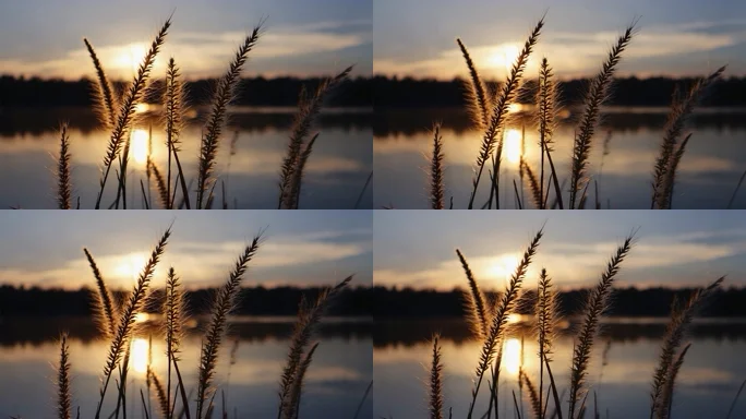 首页 / 视频素材 / AI视频素材(横屏) / 夕阳下湖边芦苇自然景观