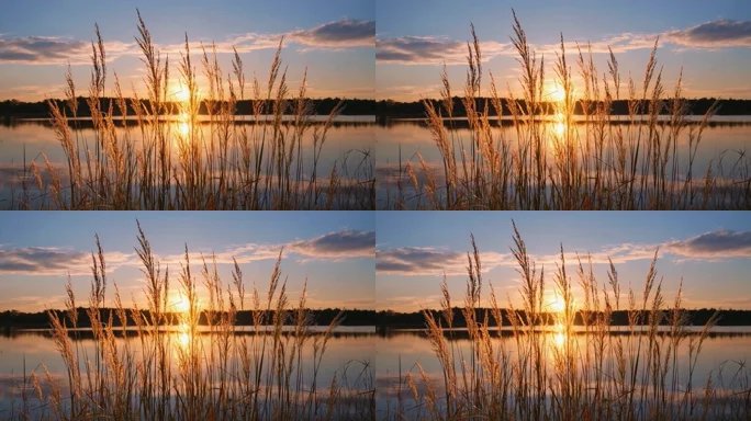 首页 / 视频素材 / AI视频素材(横屏) / 夕阳下湖边芦苇自然景观