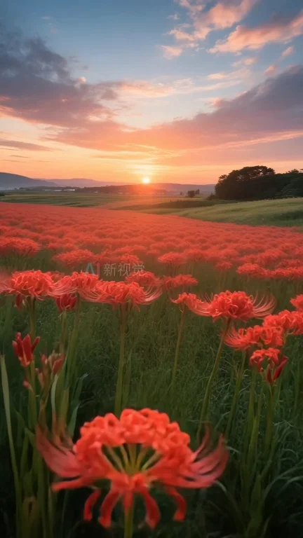 首页 / 视频素材 / AI短视频素材(竖屏) / 夕阳下的红色花海风景