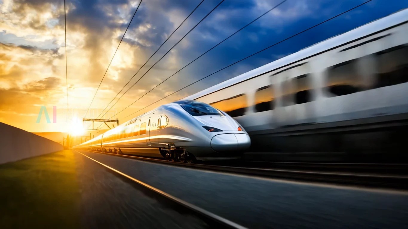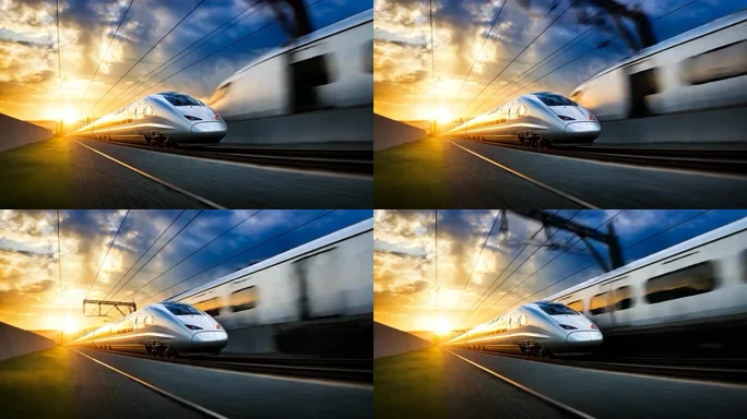 首页 / 视频素材 / AI视频素材(横屏) / 夕阳下行驶的高铁列车