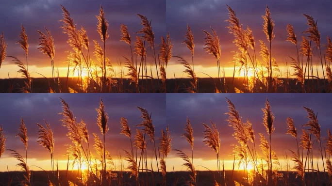 首页 / 视频素材 / AI视频素材(横屏) / 夕阳下随风摇曳的芦苇