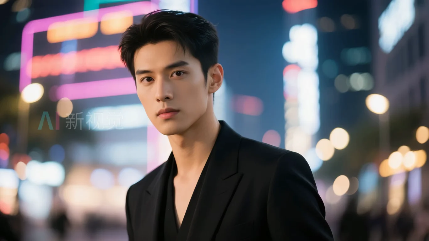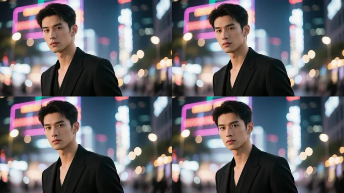 首页 / 视频素材 / AI视频素材(横屏) / 夜晚城市中身着西装的男士