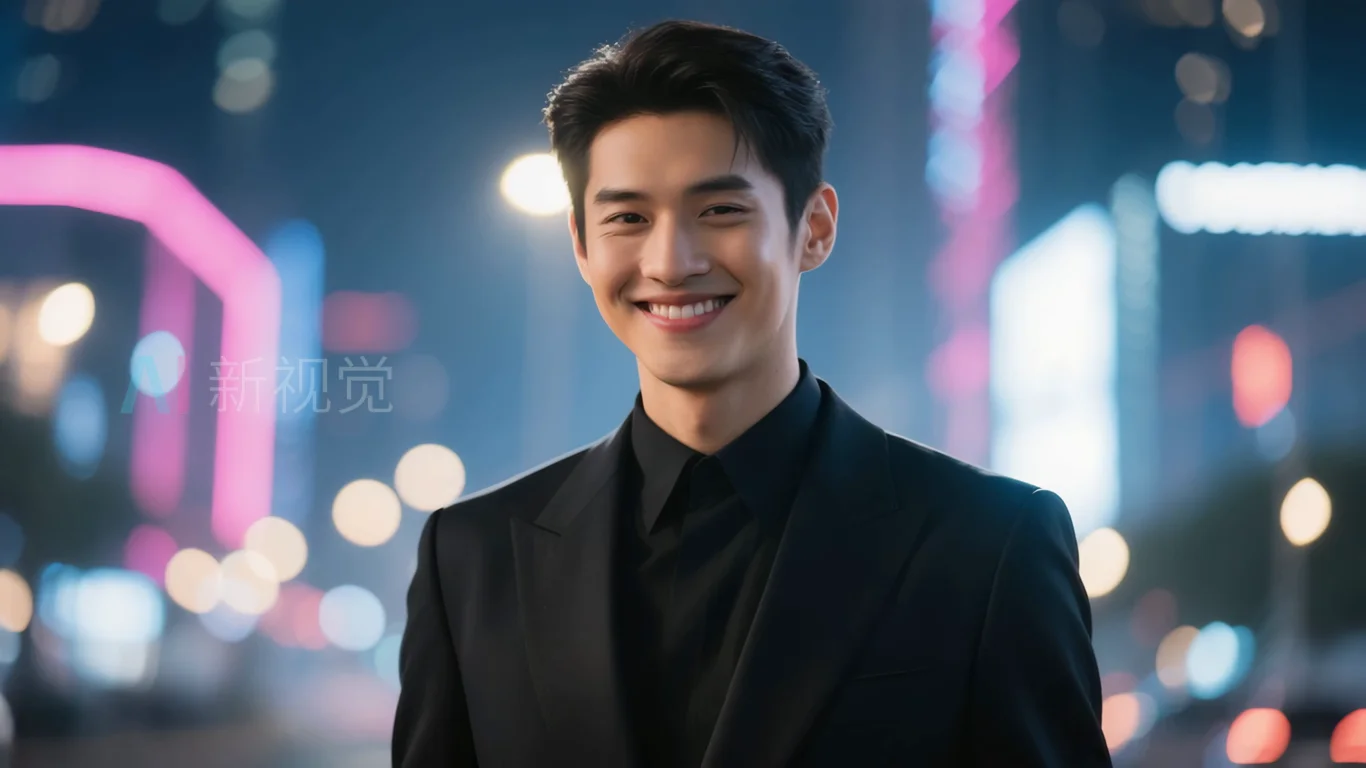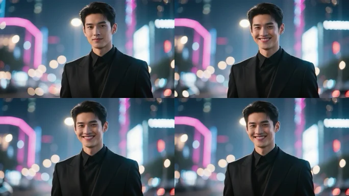 首页 / 视频素材 / AI视频素材(横屏) / 夜晚城市中身着西装的男士