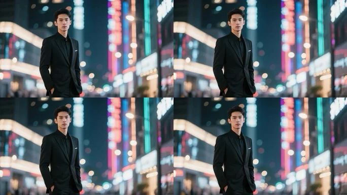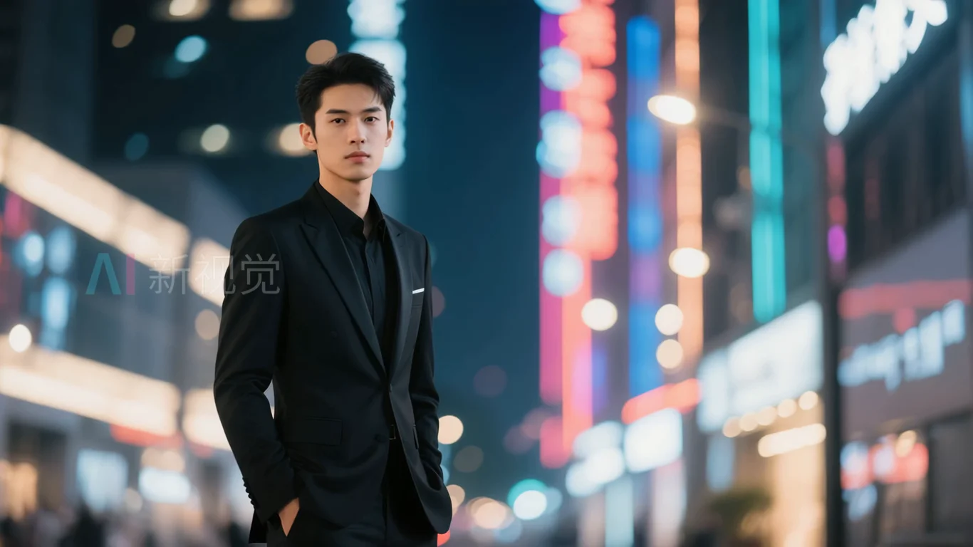 首页 / 视频素材 / AI视频素材(横屏) / 夜晚城市中身着西装的男士