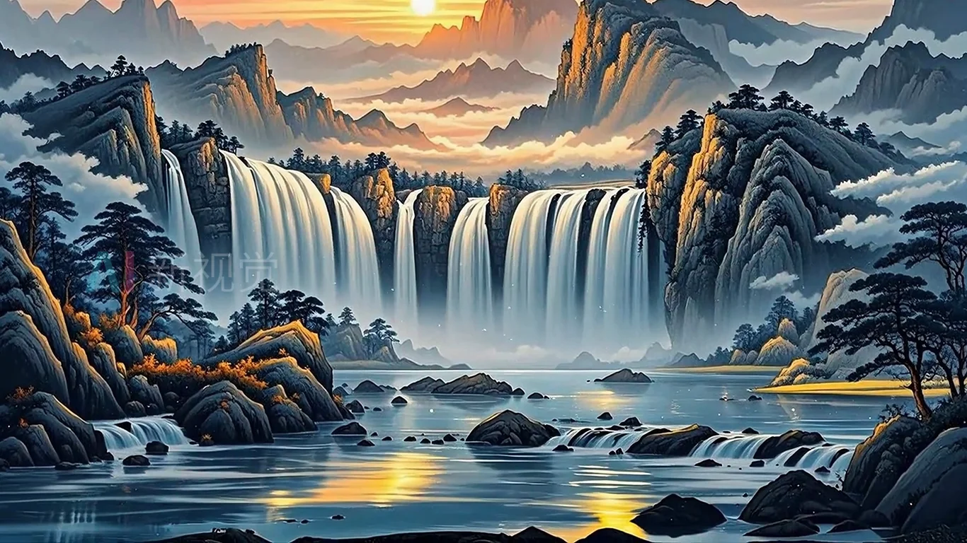 4K,3840*2160,30P,MP4格式 AIGC收徒 鎏金瀑布黄金瀑布LED视频背景舞蹈视频素材下载