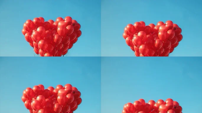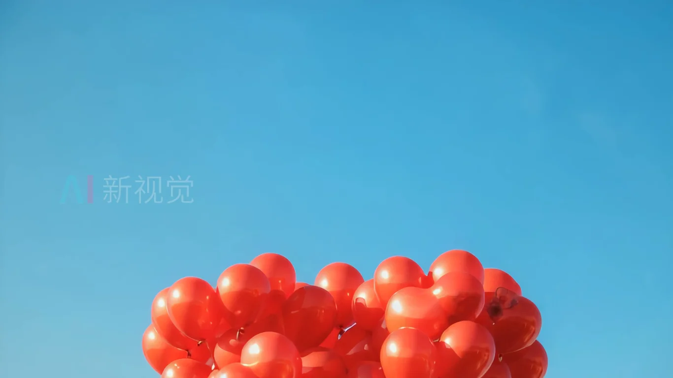 首页 / 视频素材 / AI视频素材(横屏) / 天空中的心形气球特写