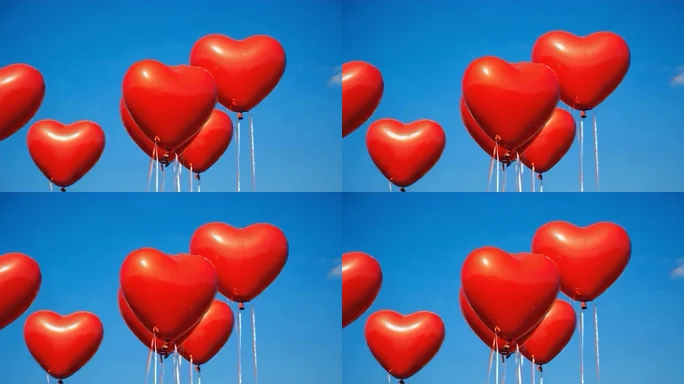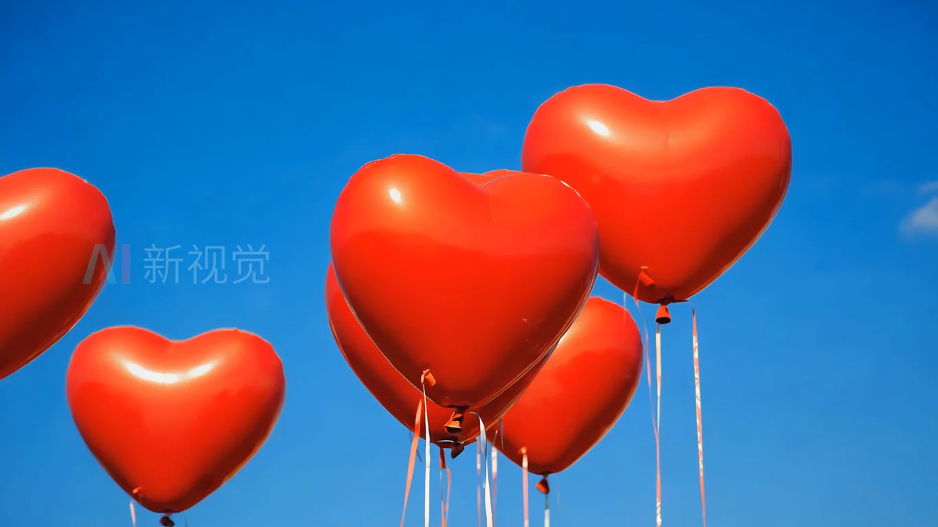 首页 / 视频素材 / AI视频素材(横屏) / 天空中的心形气球特写