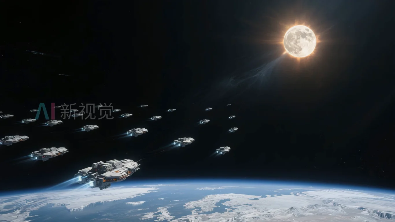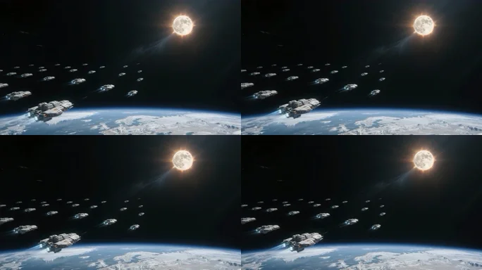 首页 / 视频素材 / AI视频素材(横屏) / 太空舰队环绕地球场景