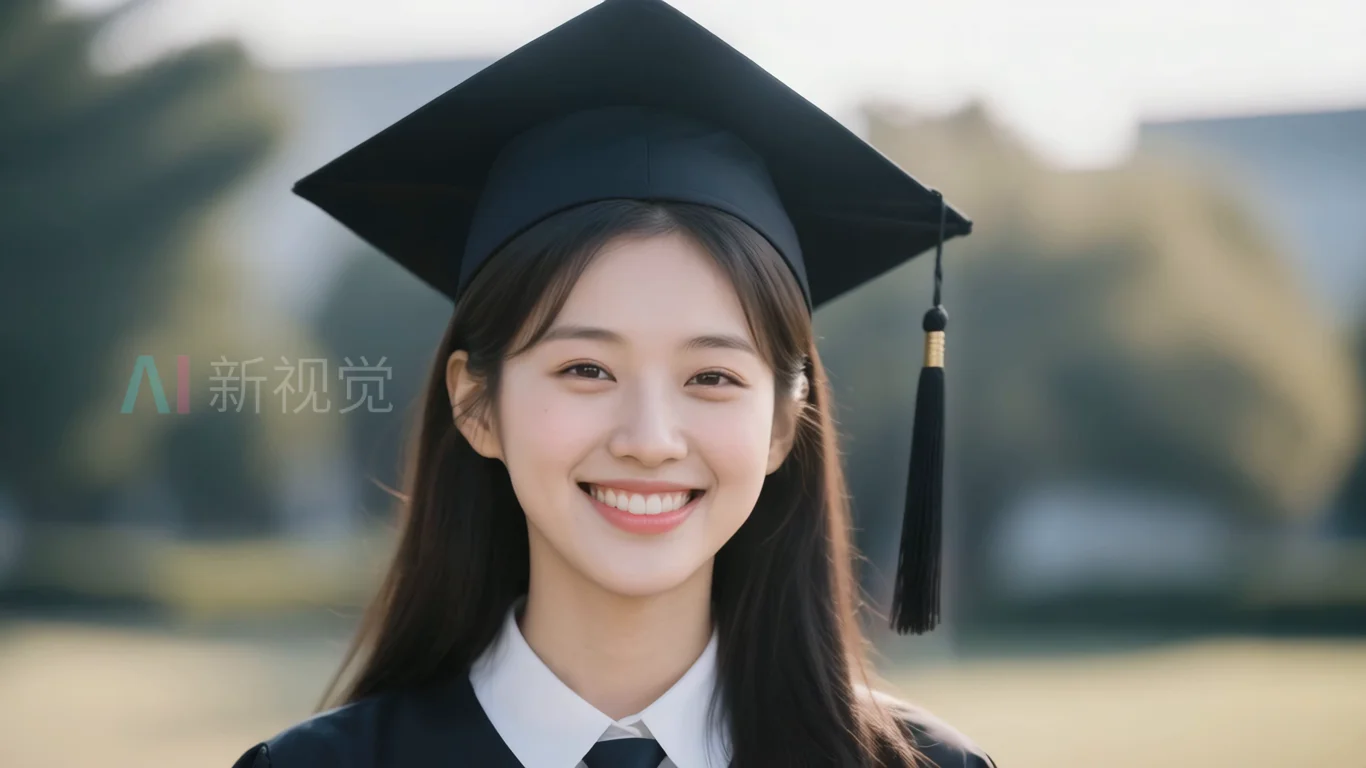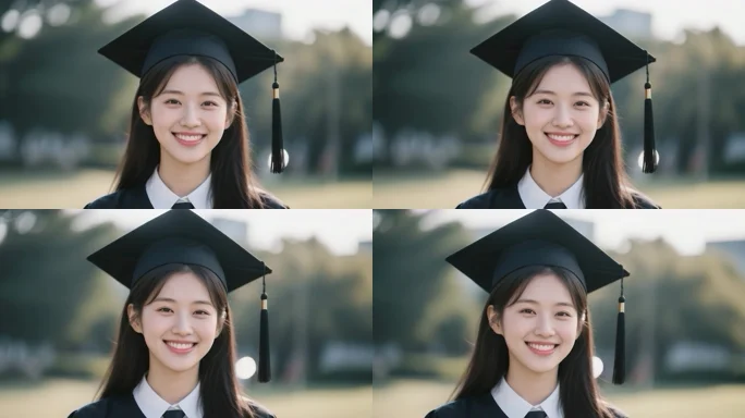 首页 / 视频素材 / AI视频素材(横屏) / 女毕业生戴学士帽微笑画面