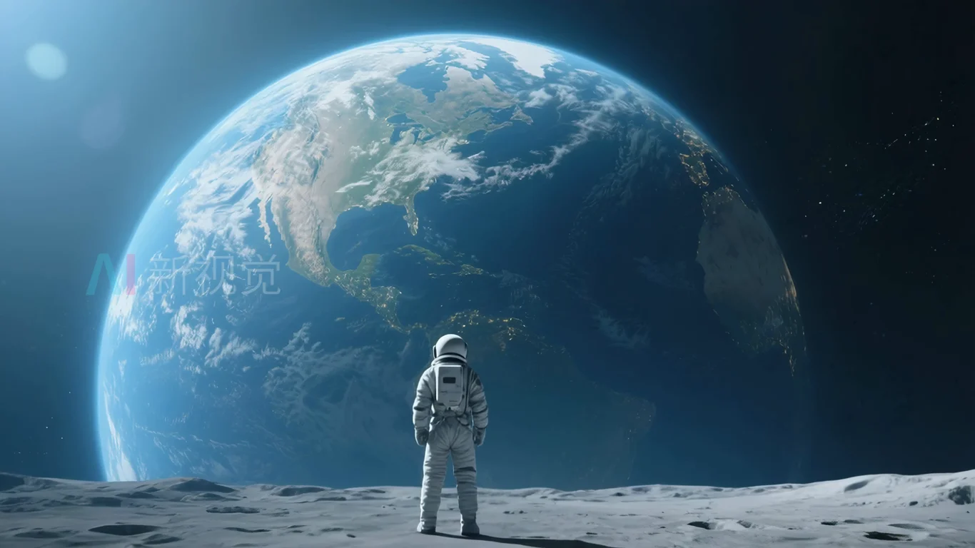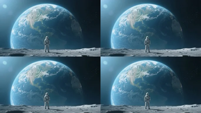 首页 / 视频素材 / AI视频素材(横屏) / 宇航员月球远眺地球画面