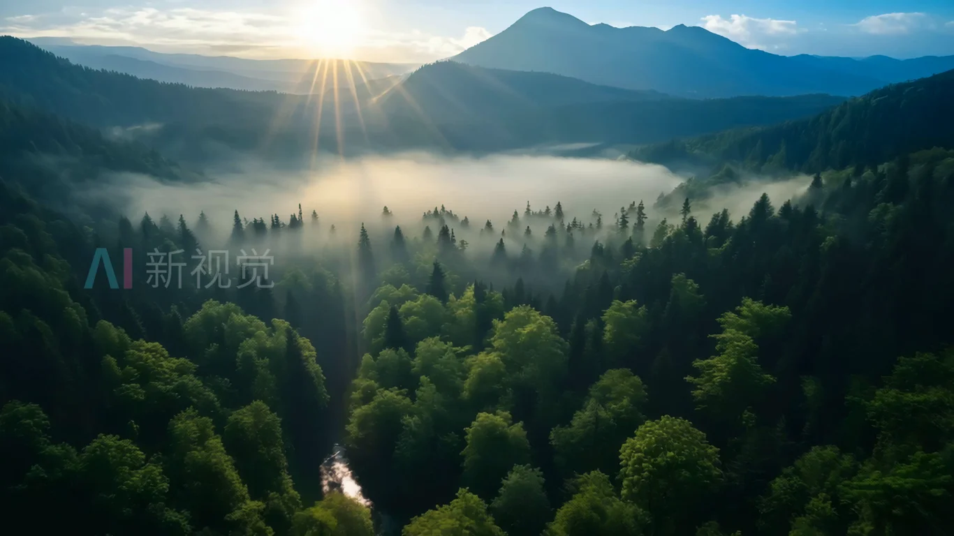 山林晨曦云雾缭绕景象