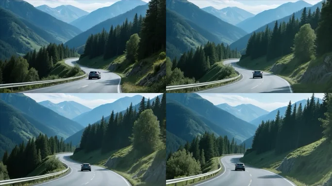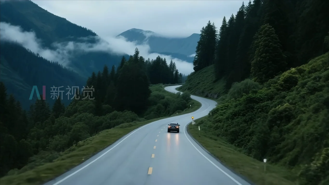 首页 / 视频素材 / AI视频素材(横屏) / 山间公路上行驶的汽车