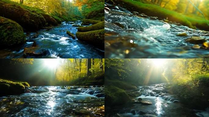 3840*2160,30P,MP4 山间小溪河流森林河水涓涓细流
