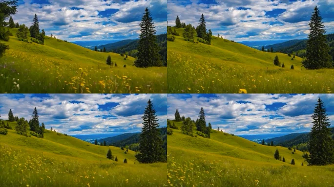 山间草地树林风景